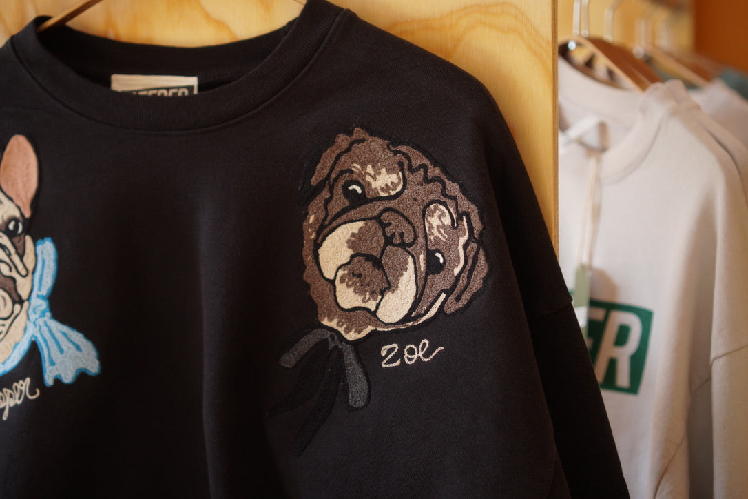 Send us a picture of your pup or other furry friend and we'll stitch up a ~7x7" rendition on your garment of choice.